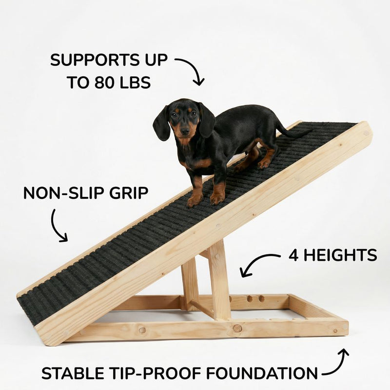 Replace risky jumps with gentle climbs. This ramp reduces joint strain and prevents painful landings so older dogs move around without limping or fear, improving daily comfort and mobility.