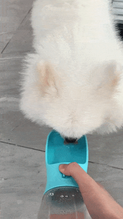 Press the bottle to release water into the attached drinking trough, then tip for a controlled flow. Designed for single-hand use while holding a leash or phone.